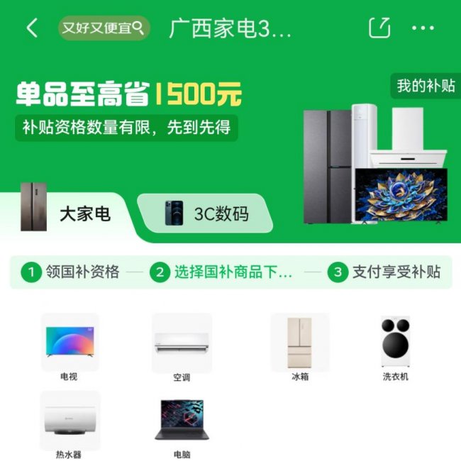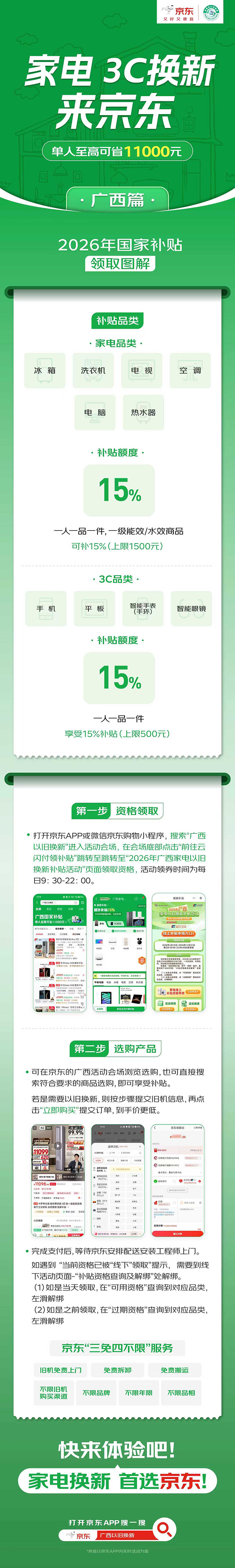想要购买家电、3C数码的广西消费者,就来京东APP搜索“广西国补”,领国补,下单心仪好物。