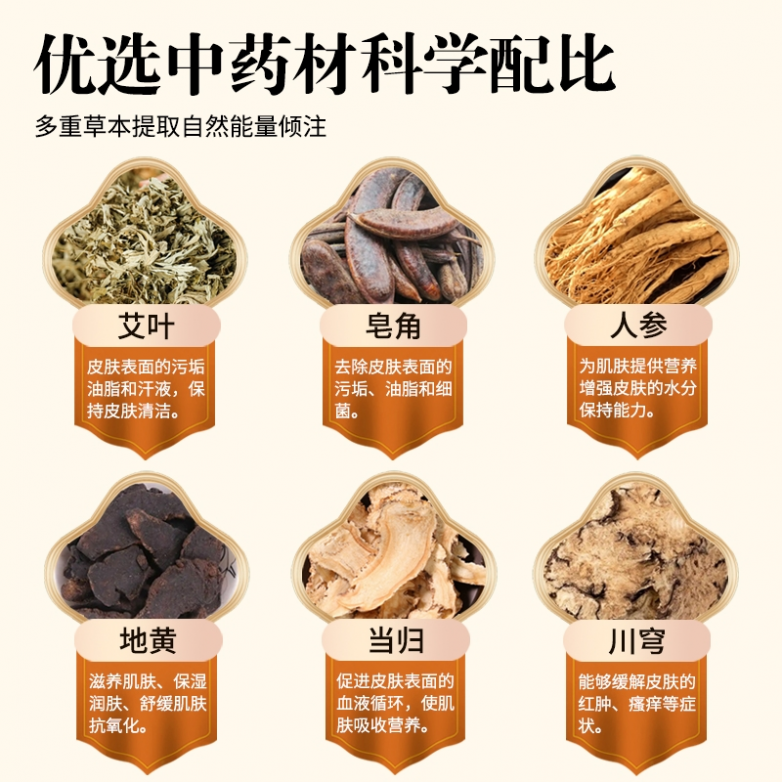 其核心竞争力源于21味纯草本的科学组方,全程遵循传统本草典籍养护理念,结合现代女性身体肌肤常见问题精准配比,摒弃化工合成成分,以天然草本之力实现温和养肤,打造出无刺激、多效协同的黄金养护配方。以苦参、地肤子、丹参、地黄四味核心草本,构筑起“祛痘控油-去鸡皮嫩肤-修护淡印-保湿稳定”的全链路稳固养护矩阵,每一味草本均有经典典籍支撑,功效靶向明确且互不冲突。苦参(《神农本草经》)执行精准祛痘控油、舒缓后背痘红肿发炎,深层调节肌肤油脂分泌,从根源减少后背痘痘反复滋生,同时缓解痘肌泛红敏感;地肤子(《滇南本草》)负责深层软化老废角质、疏通毛囊堵塞,针对性淡化四肢顽固鸡皮肤,改善肌肤粗糙颗粒感,让凹凸不平的肤质逐步细腻平滑;丹参(《本草纲目》)着重深入肌底修护受损屏障、淡化痘痘新旧痘印,改善痘后肌肤暗沉不均,让后背肌肤恢复匀净透亮;而地黄(《药性论》)则主打深层补水锁水、舒缓肌肤干燥紧绷,筑牢肌肤表层屏障,告别洗后拔干、秋冬起皮的困扰。四者互补协作、层层递进,从表层清洁到深层修护,从问题改善到长效稳定,多重机理协同发力,全方位守护身体肌肤健康。各司其职又相互增益,进一步强化舒缓稳定、滋养嫩肤、疏通代谢的功效,打造出兼顾祛痘、去鸡皮、保湿、修护的全方位肌肤润养体系。这套配方逻辑缜密、配比科学,彻底跳出普通沐浴露单一清洁的局限,力求从温和清洁、靶向祛痘、平滑嫩肤、长效保湿、屏障修护多维度,对身体肌肤进行系统化深度关怀,真正实现一瓶搞定后背痘、顽固鸡皮、干燥缺水等多种肌肤问题,省心又高效。