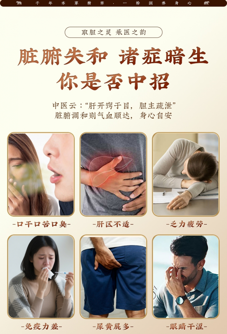 利胆溶石:调节胆汁成分,辅助改善胆囊炎、胆结石等问题;同时改善熬夜引发的面色暗沉、长痘等肌肤问题,全方位守护身心。